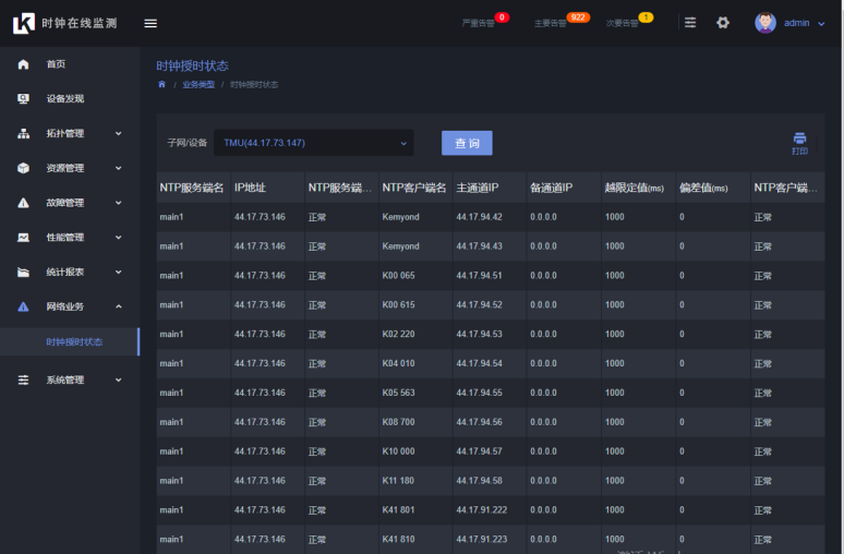 為便于實(shí)時(shí)運(yùn)維管理,避免出現(xiàn)北斗設(shè)備或者通訊鏈路故障引起的系統(tǒng)時(shí)間不統(tǒng)一,造成系統(tǒng)錯(cuò)誤或者數(shù)據(jù)分析異常發(fā)生,寬域提供了在線監(jiān)測(cè)平臺(tái),能夠?qū)崿F(xiàn)遠(yuǎn)程監(jiān)控,全方位告警、快速定位故障原因,可視化管理。
