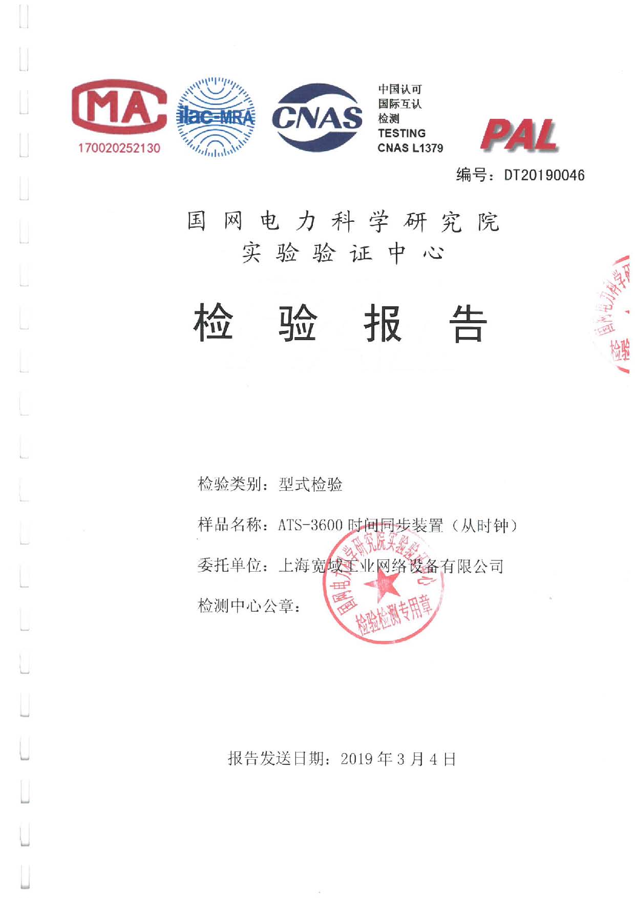 ATS-3600時間同步裝置(主時鐘)檢驗報告