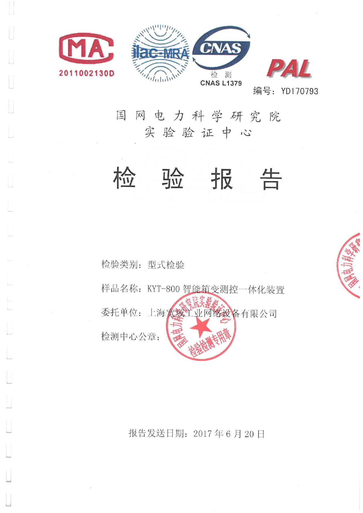 KYT-800智能箱變測控一體化裝置-國網檢驗報告