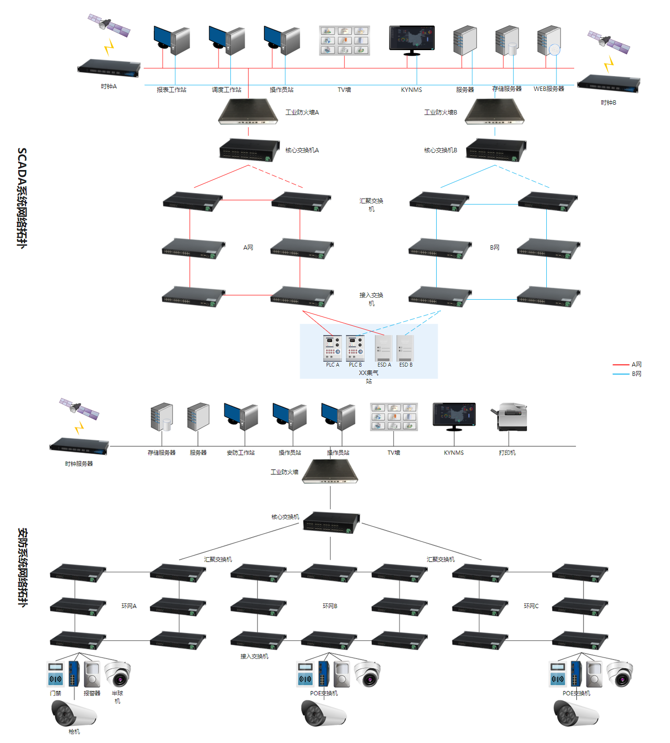 按照“統一管控、分布采集”的原則,建設網絡安全態勢感知系統,將其作為網絡安全中心。在中控室統一部署態勢感知主站,在所有分區分別部署網絡安全采集裝置,采集裝置對網絡安全數據進行采集、分析處理,最后將采集的數據發送到主站,實現在主站的統一集中管控。實現工控網絡安全實時監控,發現未知威脅、找出安全業務問題,實現事前預警、事中可知可控、事后可追溯的目的。