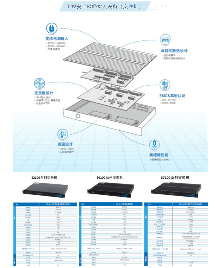 S7100安全可控系列是上海寬域工業(yè)網(wǎng)絡(luò)設(shè)備有限公司自主研發(fā)的新一代安全可控的國產(chǎn)化網(wǎng)管型全千兆機架式工業(yè)交換機。該系列交換機采用高性能的工業(yè)級別芯片和優(yōu)秀的工業(yè)設(shè)計,可在所有端口滿負載運行下保持線速轉(zhuǎn)發(fā),產(chǎn)品的設(shè)計制造充分考慮了工業(yè)應(yīng)用環(huán)境中的各種惡劣條件和干擾因素,能滿足高低溫、過電壓、漏電及高壓沖擊等各種要求,并對嚴酷的電磁環(huán)境中的數(shù)據(jù)口防雷、快速脈沖群、浪涌、靜電等方面作了可靠性設(shè)計,可保證數(shù)據(jù)在嚴苛環(huán)境下可靠傳輸。本系列設(shè)備采用全金屬外殼設(shè)計,防護等級IP40。該系列產(chǎn)品適用于對安全可控要求較高的信息安全系統(tǒng)、工業(yè)控制系統(tǒng)、信息自動化等系統(tǒng)。